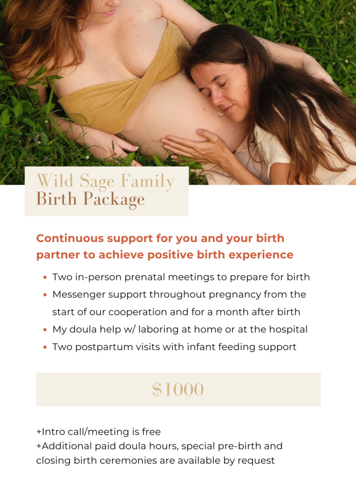 I am offering continuum birth packages (prior preparation, being on-call for birth and recovery help) and individual sessions for parents before and after this life-affirming event. Here’s the approximate cost for the package. In each individual case we discuss the format and prices.
